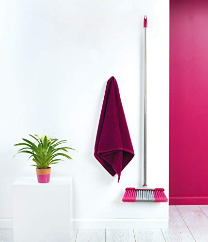 Kleeneze KL062437EU spazzola a setole morbide, manico lungo, per tutti i tipi di pavimenti, pavimenti duri, 1.2 m, spazzola per interni, acciaio inox, grigio/rosa