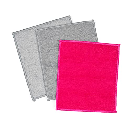Kleeneze KL070913EU Panni in spugna in microfibra Confezione da 3, grigio/rosa, lavabili in lavatrice, superassorbenti, per tutte le superfici dure e i piani di lavoro delicati, panni per la pulizia