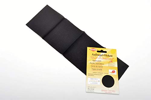 Kleiber - Toppa per riparazioni termoadesiva in Cotone 40 x 12 cm per Tessuti a Maglia fine, Nero
