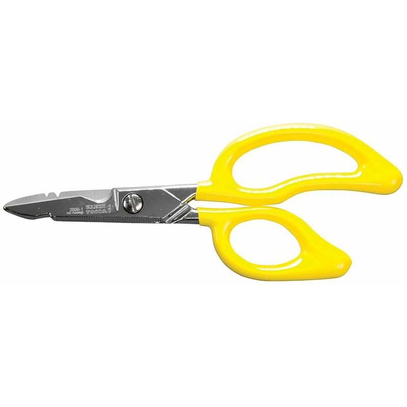 Descrizione Descrizione tagliare, striscia e sbavatura con il elettricista forbici multifunzione. Il resistente, lame in acciaio ad alto tenore di carbonio forgiato mantenere nitidezza e Outlast timbrato disegni. Questo strumento versatile dispone di una tacca taglia cavo per fino a 14 AWG wire, stripping tacche per 19 e 23 AWG wire Plus una tacca nella punta a de-burr scatole elettriche. unico nel suo genere, tuffato maniglia per una presa più preferenze. Avviso di sicurezza Indossare sempre una protezione per gli occhi approvata. Non utilizzare mai su o vicino a circuiti elettrici in tensione.