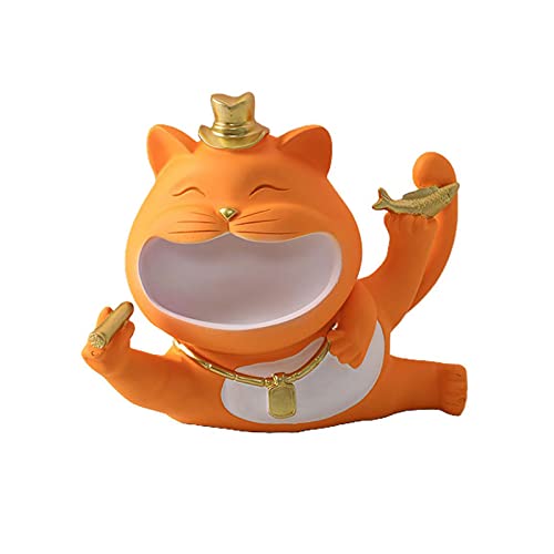 KLFD Resina Bocca Grande Scatola Portaoggetti per Gatti per Gioielli Vassoio per Piccoli Oggetti Decorazioni per La Casa Ornamenti Dell'ingresso Arte Ornamentali Accessori per Riporre,Arancia
