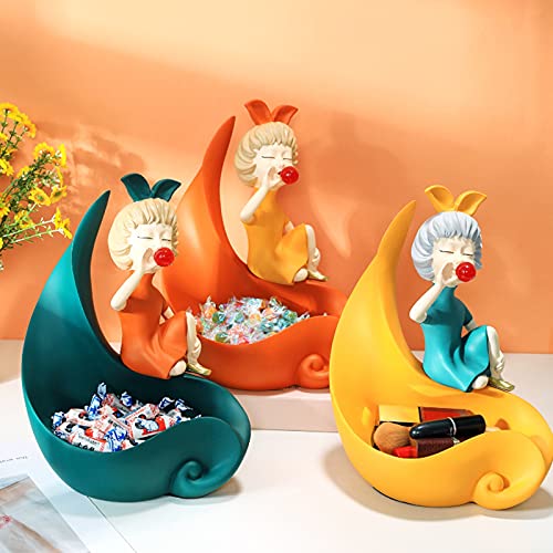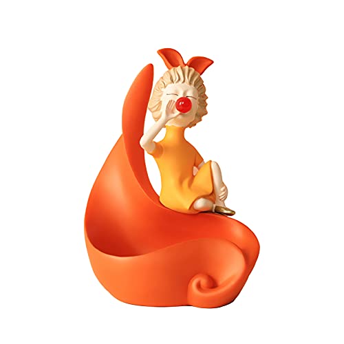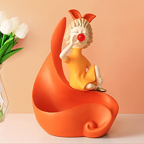 KLFD Statue di Ragazza con Ciotola di Caramelle Vassoio Portaoggetti Chiave Spuntino Vassoio di Frutta Deposito Gioielli Scultura Negozio per Ufficio Ornamenti per La Conservazione,Arancia