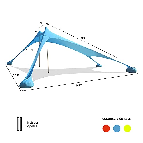 [Funzione Hyper Protection e Shadow regolabile]: protezione UV 99% dal rivestimento in PU, SPF50 + per prevenire la pelle dai forti raggi UV. Mentre il sole si sposta durante il giorno, basta spostare le ancore del sacco di sabbia o regolare la posizione dei poli per ottenere il meglio ripararsi dal sole e continuare a godersi i momenti di svago.