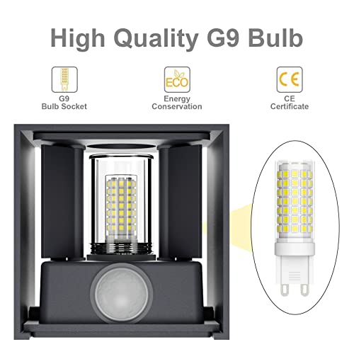 Klighten 2PCS LED Lampada da Parete Interno/Esterno con Sensore di Movimento, con Sorgente Luminosa Sostituibile Lampadina G9, 4000K Angolo del Fascio Regolabile Applique Esterno, Antracite
