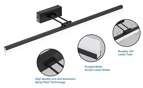 【Materiale di alta qualità】 Il materiale di questa lampada da specchio per bagno è ferro, alluminio e acrilico, che viene lavorato e formato dalla tecnologia di verniciatura a spruzzo. Il luce da specchio non è facile da arrugginire e sbiadire e ha una forte resistenza alla corrosione.