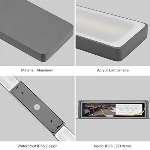 【Impermeabile IP65】La lampada da parete lunga è impermeabile IP65 e realizzata in alluminio di alta qualità, quindi ha un'eccellente resistenza all'acqua, quindi può essere utilizzata non solo in interni ma anche in esterni. La lampada da parete si adatta a soggiorno, camera da letto, sala da pranzo, bagno, corridoio, scale, ingresso, giardino, terrazza e balcone.