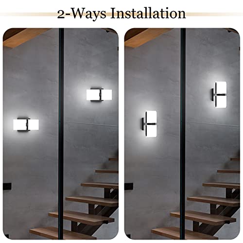 Klighten 12W Applique da parete interni moderna, lampade parete interni con paralume in acrilico per corridoio, soggiorno, camera da letto, scala, Nero, bianco freddo 6000K