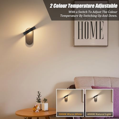 Klighten Led Applique da parete Interno, 3000K/4000K Lampada da Parete Con interruttore, Lampada da Muro 330°Orientabile, per Scale Soggiorno, Luce calda/Naturale, Antracite, Alluminio, 5W