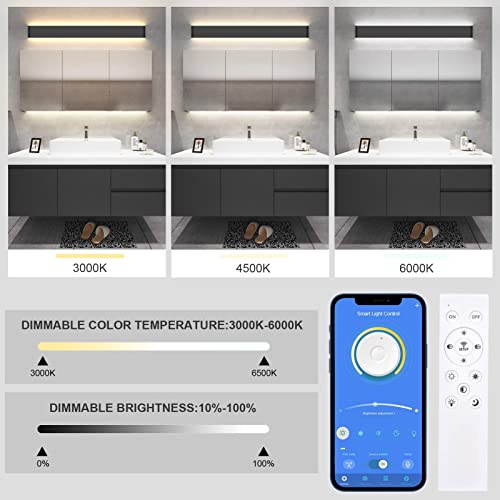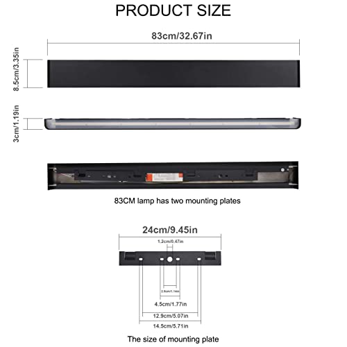 Klighten Applique da Parete LED Interno Dimmerabile con Telecomando, Lampada da Parete Mordern, per Soggiorni, Camere da letto, Bagno, 1200-3000 Lumen, 3000K-6000K, 30W, 83cm, Nero