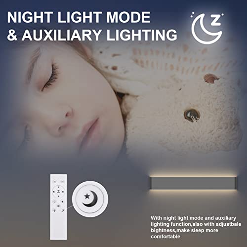 Klighten Applique da Parete LED Interno Dimmerabile con Telecomando, Lampada da Parete Mordern, per Soggiorni, Camere da letto, Bagno, 800-2000 Lumen, 3000K-6000K, 20W, 61cm, Grigio Scuro