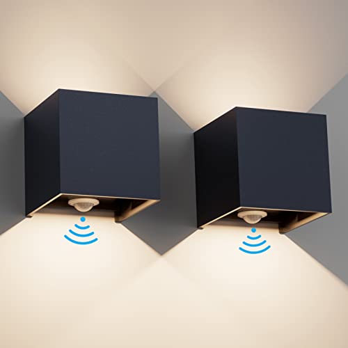 Klighten 2 PCS Lampada da esterno, 12W Applique da Parete con sensore di movimento per luci esterni/interni Lampade da parete con fascio regolabile IP65 Impermeabile 3000K Antracite