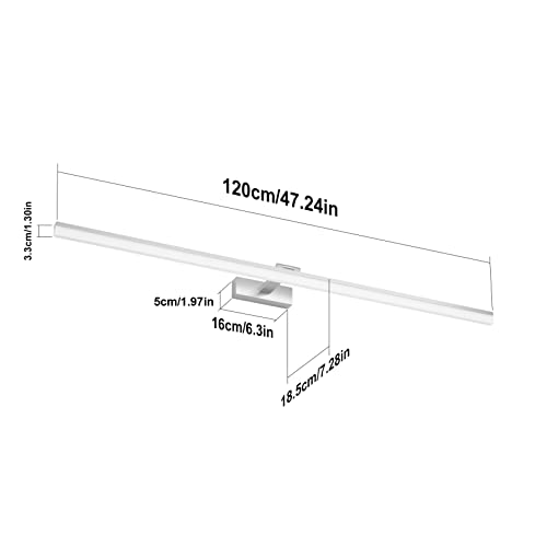 Klighten Lampada Specchio Bagno 32W 120CM Impermeabile IP44, Specchio Bagno LED Bianco Freddo 6000K 1820LM Luce Specchio Bagno, 180°Regolabile, Non Dimmerabile