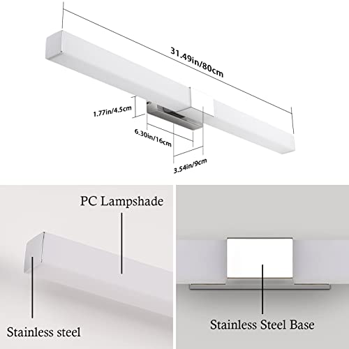 Klighten Lampada da Specchio per Bagno LED 80 cm, 16W 1360 Lumen Luce Specchio Bagno, Impermeabile IP44 Applique da Bagno in Acciaio Inossidabile e Acrilico, Bianco Caldo 3000K