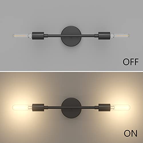 Klighten Lampada da Specchio per Bagno, Applique Bagno Vintage con 2 Luci Applique da Parete Interno in Ferro Nero, Luce Specchio Bagno, Lunghezza: 40 cm, Attacco E27, Lampadina non Inclusa