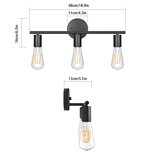 Klighten Lampada da Specchio per Bagno Industriale Vintage, Applique da Bagno con 3 Luci, Luce Specchio Bagno in Ferro Nero, Lunghezza: 48 cm/18.9 pollici, Attacco E27, Lampadina non Inclusa