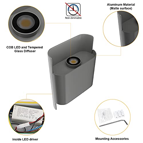 Klighten 12W Lampade a Parete LED Esterno Interno IP65 Su e Giù Applique da Parete Moderne in Alluminio Applique Parete per Soggiorno Corridoio Giardini, 3900-4200K Bianco Naturale, Grigio Scuro