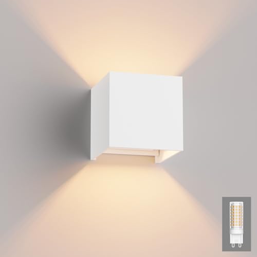 Klighten 9W Lampade da Parete per Interni/Esterno Bianco Caldo 3000K Applique da Parete Con G9 Lampadina Sostituibile, per Portico, Bagno, Corridoio,Balcone (Bianca)