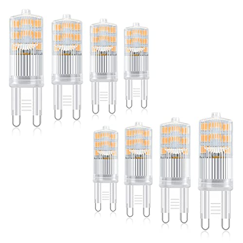 Klighten Lampadine LED G9 Bianco Caldo 3000K, 3W Equivalente Alogeno 30W, Non Dimmerabile Nessun Sfarfallio Lampade LED G9, AC220-240V G9 LED Lampada, Confezione da 8