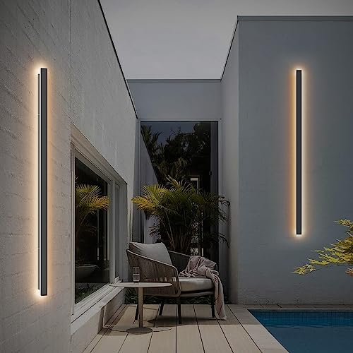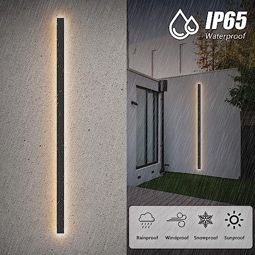 Klighten LED Lunga Applique da Esterno, Nero Lampada da Parete Interno, 150CM/45W Applique da Parete, IP65 Alluminio Moderno Luci da Parete, per Ingresso Giardino Terrazza, Bianco Cald 3000K