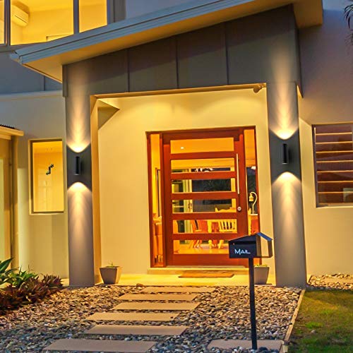 【Design moderno】Questa lampada da parete per esterni dal design semplice dà un'impressione elegante e moderna, l'illuminazione su e giù, si adatta alla decorazione dell'illuminazione esterna e interna, rende la tua casa più bella e straordinaria di notte.