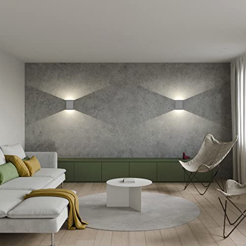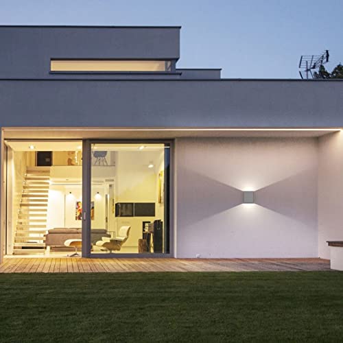 Klighten 4 Pezzi 7W Applique da Parete LED Esterno Interno impermeabile IP65, Lampade da Parete Su e Giù Moderno in Alluminio per Soggiorno Ingresso Corridoio, Bianco naturale 4500K, Grigio Scuro