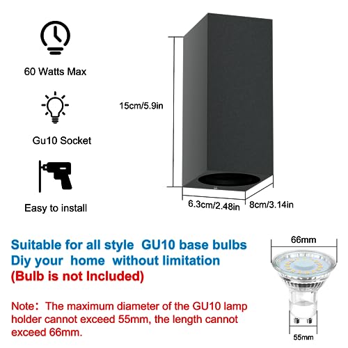 Klighten 2 Pezzi Applique da Parete Esterno Interno Impermeabile IP65, Attacco GU10 Lampade da Parete Moderno in Alluminio, Up&Down Lampada a Muro Antracite, Lampadina non Inclusa