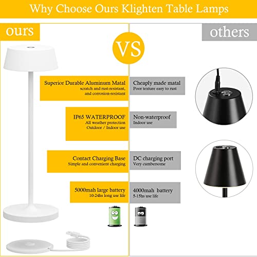 Klighten 2 Pezzi Lampada LED Dimmerabile da tavolo senza fili Interni/Esterni, Ricaricabile