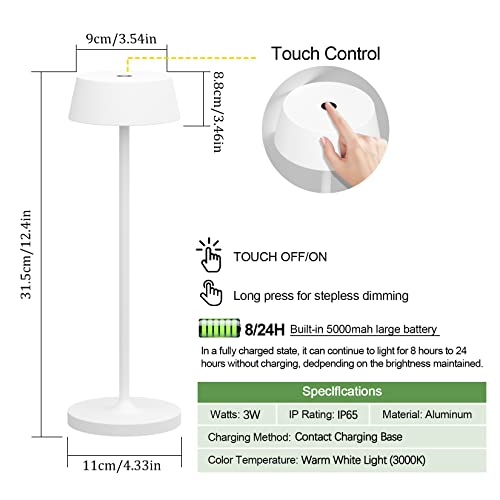 【Lampada da tavolo da esterno impermeabile IP65 】: I materiali di questa lampada da tavolo da esterno senza fili adottano l'alluminio metallico pressofuso. garantire la lunga durata della nostra lampada da tavolo. Nel frattempo, il livello di protezione IP65 e la forma di drenaggio unica, non c'è bisogno di preoccuparsi dell'ingresso dell'acqua, può essere applicato a varie situazioni all'aperto. (Non immergere l'intera lampada da tavolo in acqua).