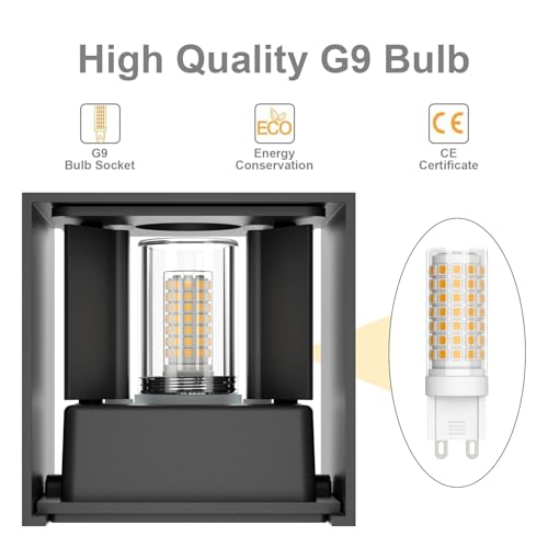 Klighten 2 Pezzi LED Lampada da Parete Interno/Esterno Lampadina G9 con Sorgente Luminosa Sostituibile 3000K Bianco Caldo Angolo del Fascio Regolabile Applique Esterno, Grigio scuro