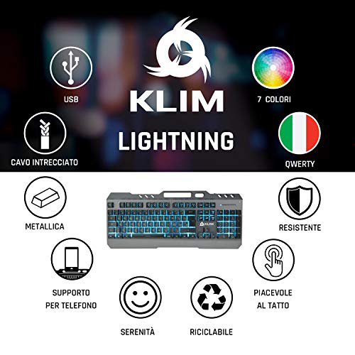 KLIM Lightning - Nuova Versione - Tastiera Semi-Meccanica QWERTY Ibrida - Scelta di 7 Colori + Garanzia di 5 Anni - Struttura Metallica - Tastiera per Gaming Videogiochi - per PC PS4 Windows, Mac