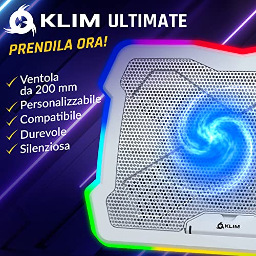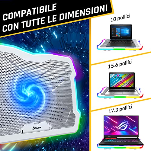 KLIM Ultimate Bianca + Base di raffreddamento RGB per PC portatili da 11" a 17" + Supporto PC Portatile con Ventola Gaming + Ventola PC + 2024 + Stabile e silenzioso + Compatibile con PS4 PS5 Xbox One