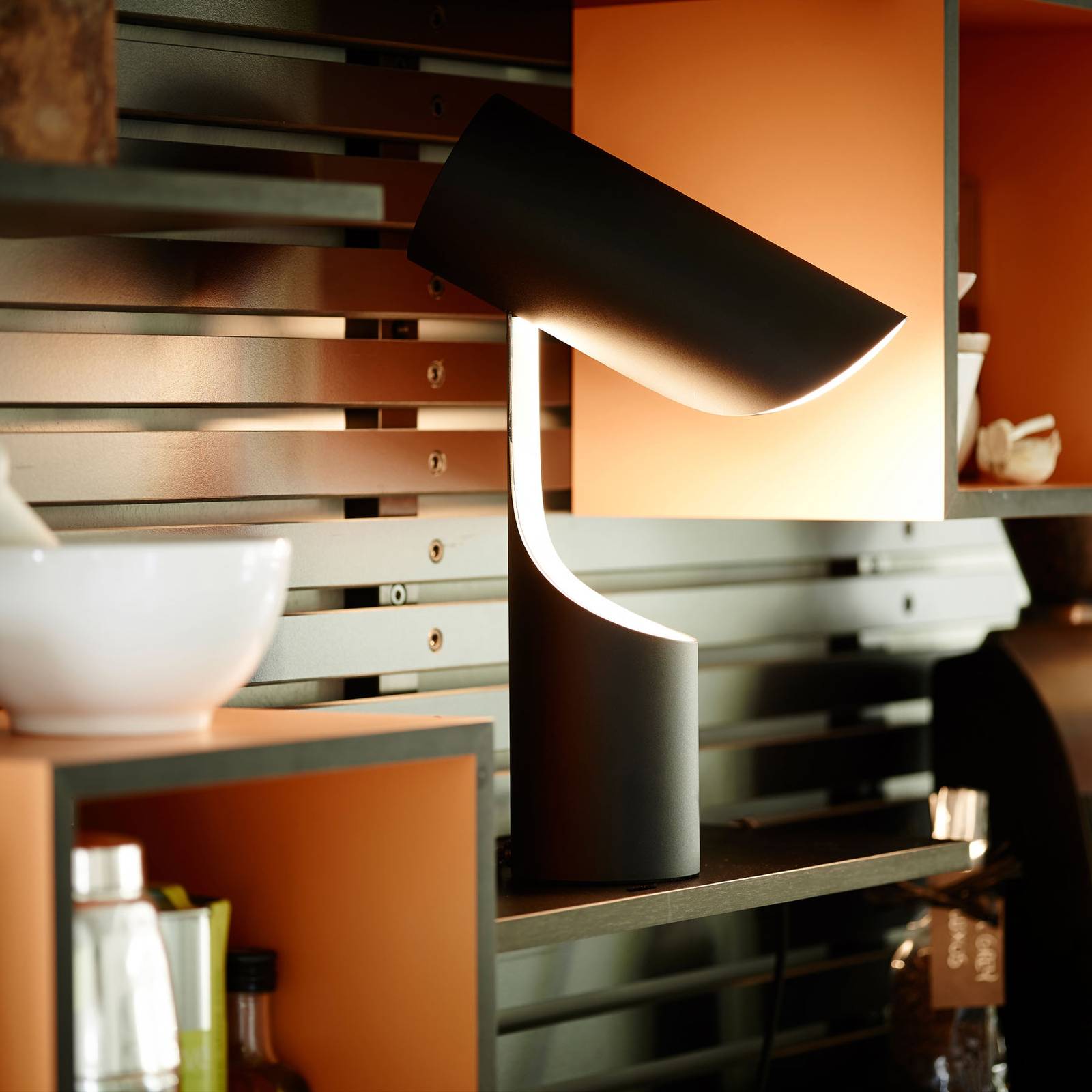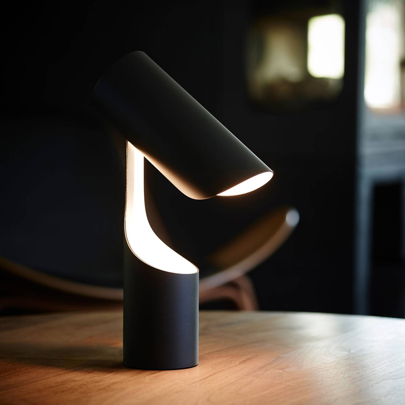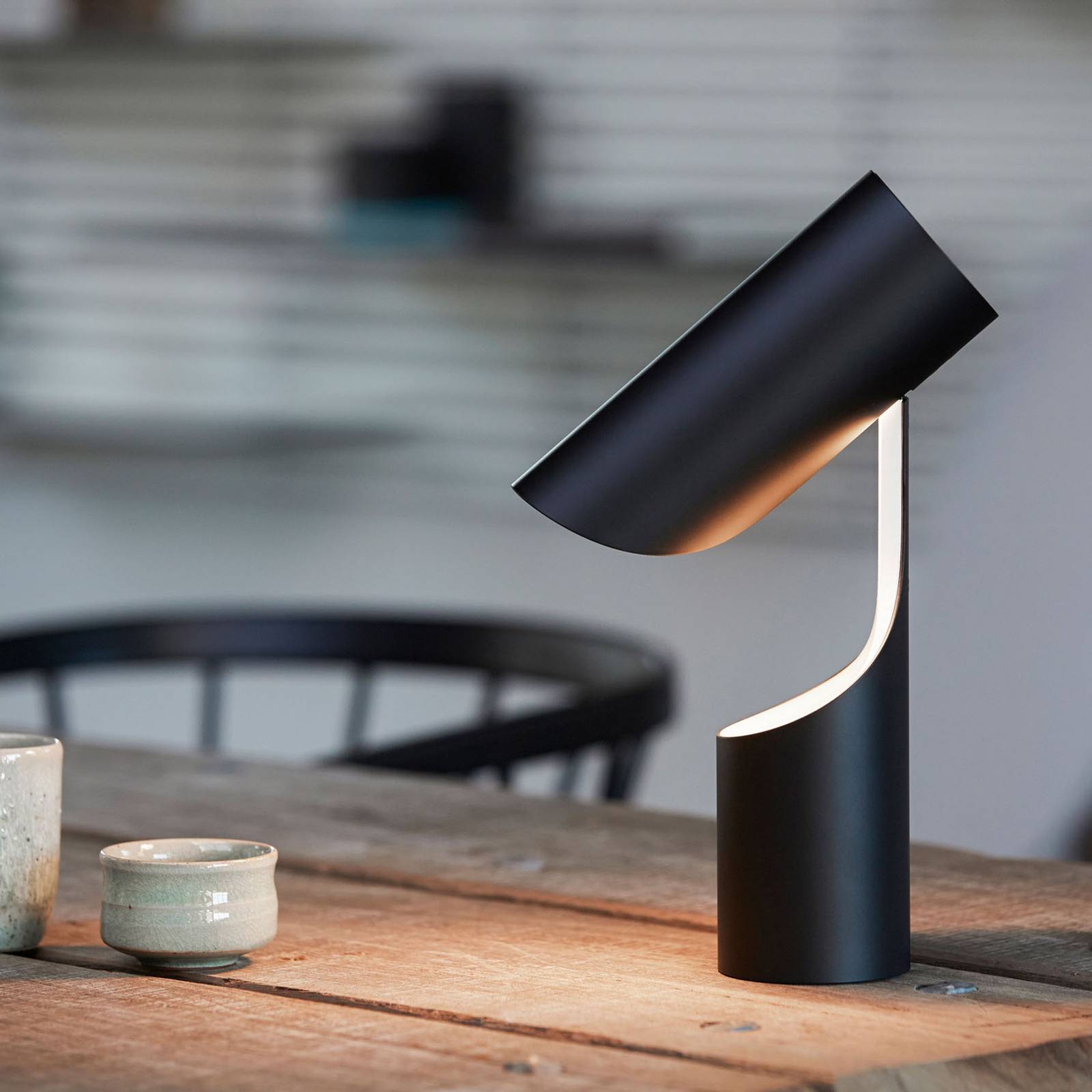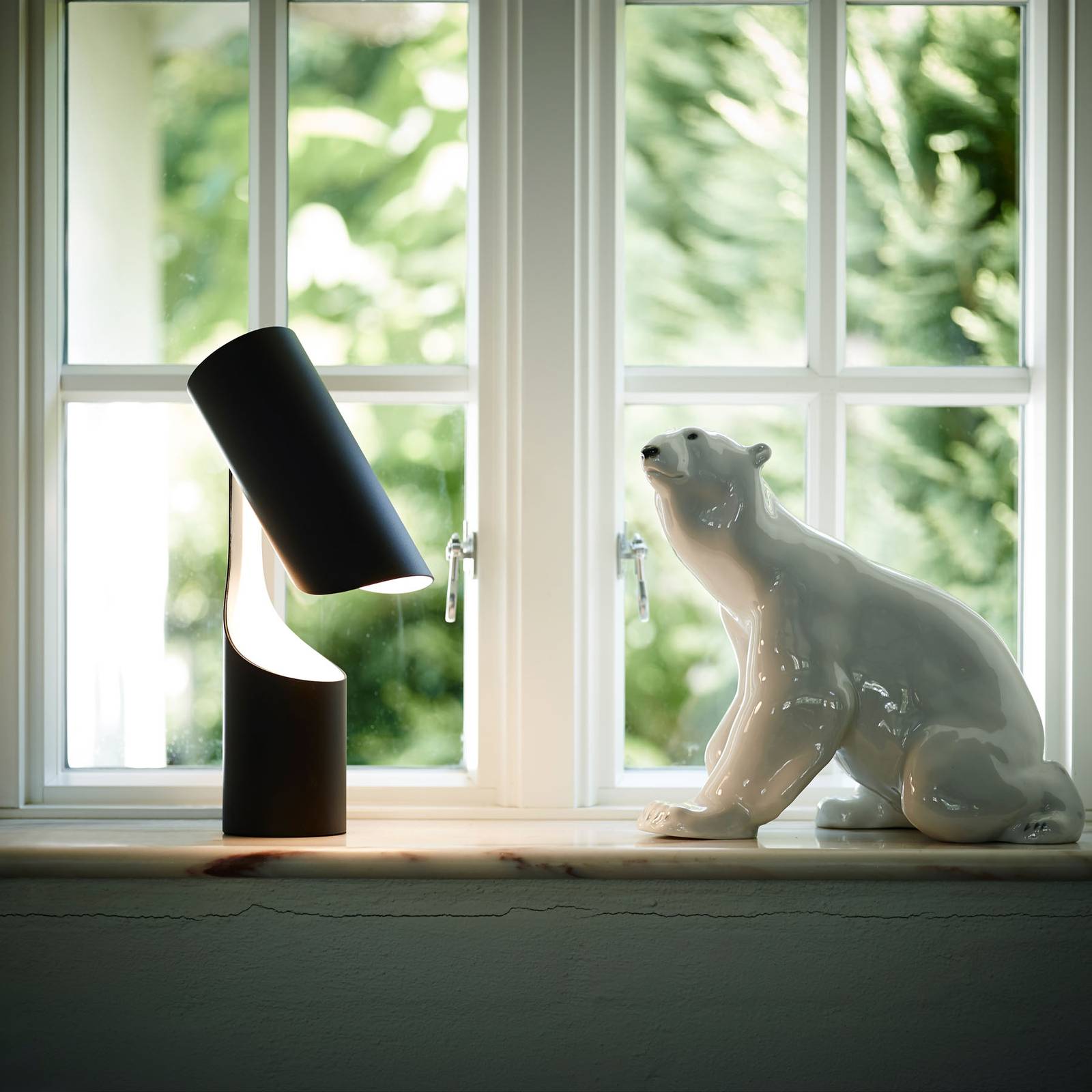 Lampada da tavolo minimalista Mutatio con paralume orientabile Il designer danese Christian Troels ha puntato sul minimalismo nella forma e nel colore per la sua serie di lampade Mutatio. La lampada da tavolo effettivamente cilindrica rivela il suo vero potenziale quando il paralume è ripiegato e la luce è diretta nella direzione desiderata. Quando si apre il paralume, però, non si rivela solo la luce, ma anche l'interno bianco, che contrasta con l'esterno completamente nero della lampada da tavolo. Chi ama il design stravagante e insolito, ha assolutamente ragione con questa lampada da tavolo. Grazie alle sue dimensioni e all'aspetto filigranato, può essere collocato in molti modi diversi. Da un lato può attirare l'attenzione come pezzo unico di design, ma dall'altro può anche completare con stile un interno già orientato al design. Un discreto interruttore sul cavo lo rende facile da usare. Il produttore danese di luci di design LE KLINT si concentra sulla produzione interna e sulla buona lavorazione artigianale. Le tradizioni sono state tramandate di generazione in generazione e quindi sono ancora oggi note per i loro prodotti di alta qualità. Soprattutto, l'unicità e lo sviluppo costante sono al centro dell'attenzione.