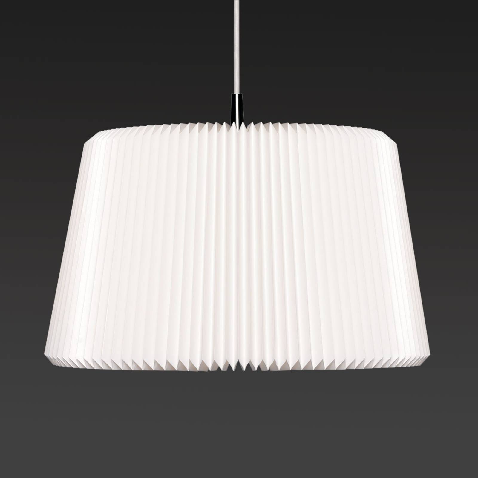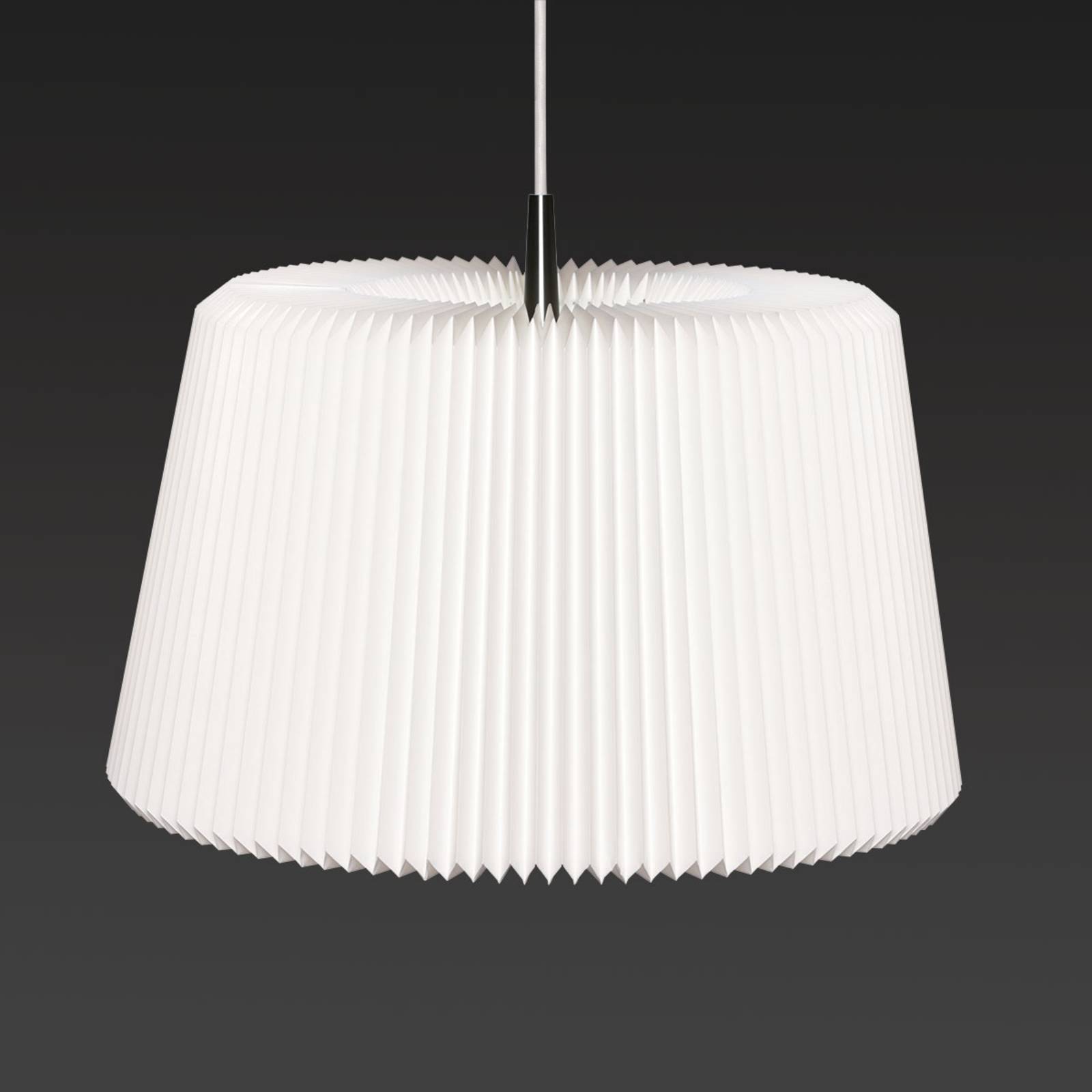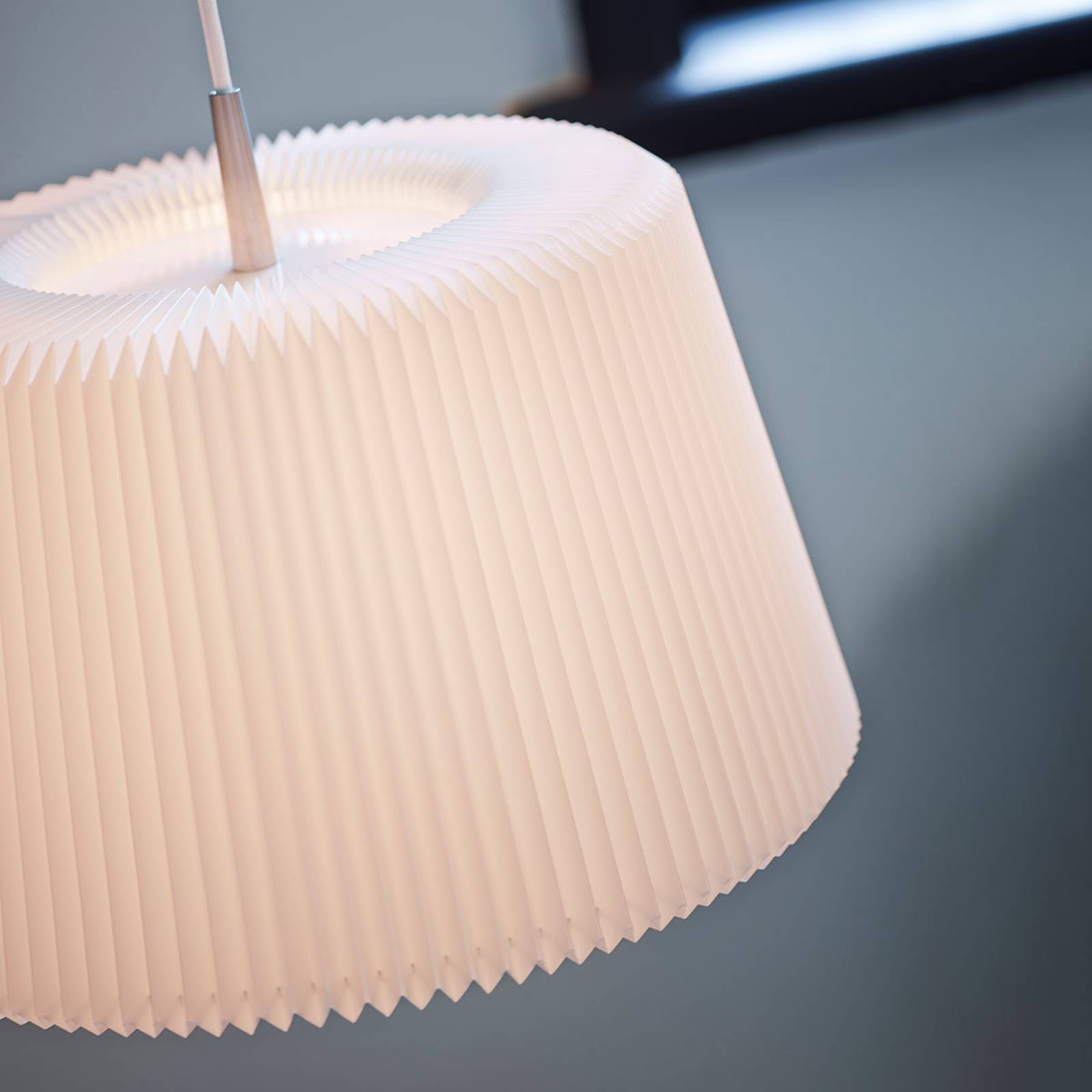 Lampada a sospensione di design Snowdrop con paralume in plastica pieghettata a mano Il paralume della lampada a sospensione Snowdrop è realizzato in plastica bianca piegata a mano. Questa tecnica di piegatura è il tratto distintivo del produttore danese che realizza le sue creazioni in Danimarca da 75 anni. A tutt'oggi non è possibile usare questa particolare tecnica di piegatura con l'ausilio di macchine, cosicché i paralumi sono ancora oggi fabbricati a mano da professionisti. Pertanto ogni lampada è un oggetto unico. Il design è firmato dal team di designer danesi Thomas Harrit, Nicolai Sørensen e Kim Samson. La lampada a sospensione Snowdrop è un buon esempio di come combinare le tradizioni artigianali con un tocco moderno.