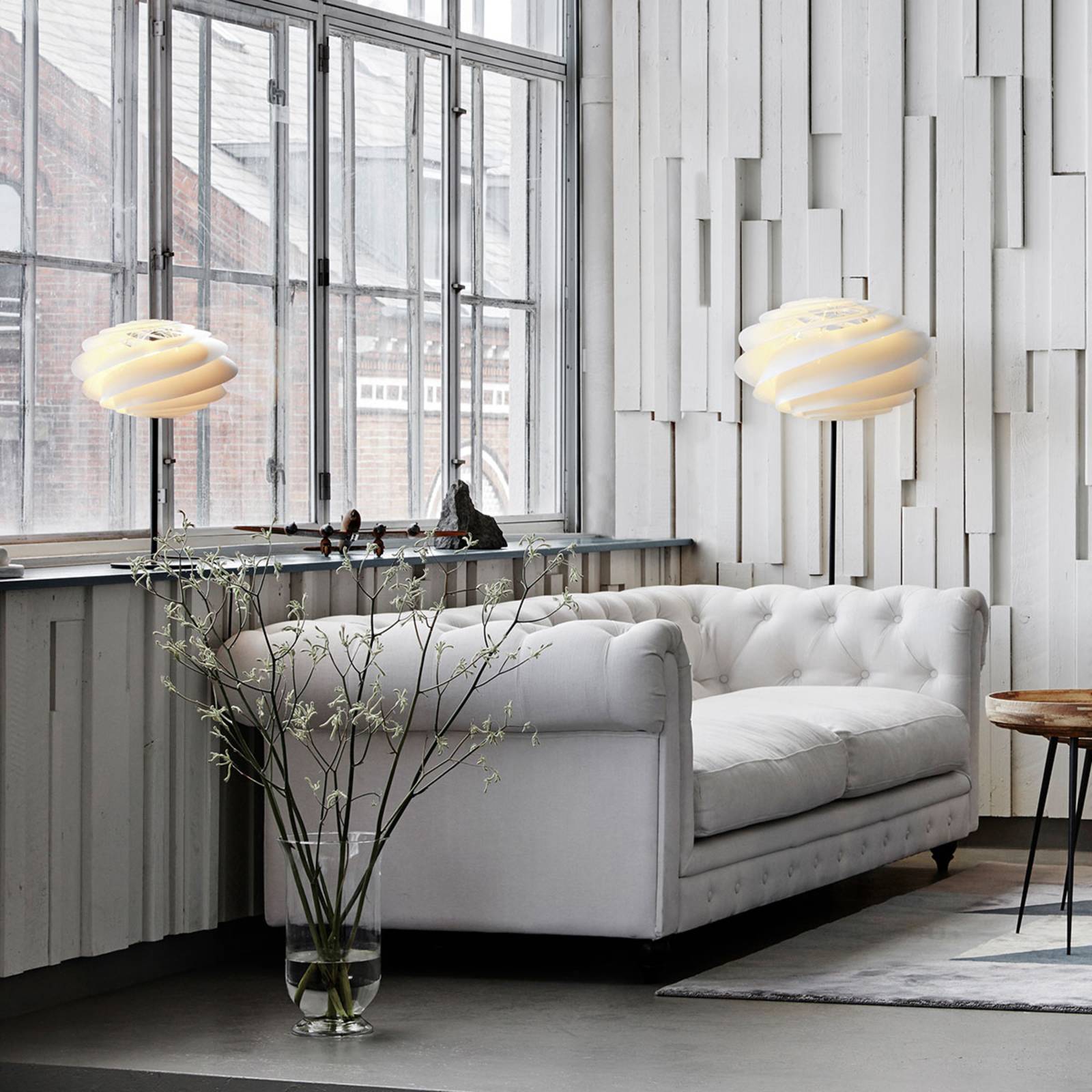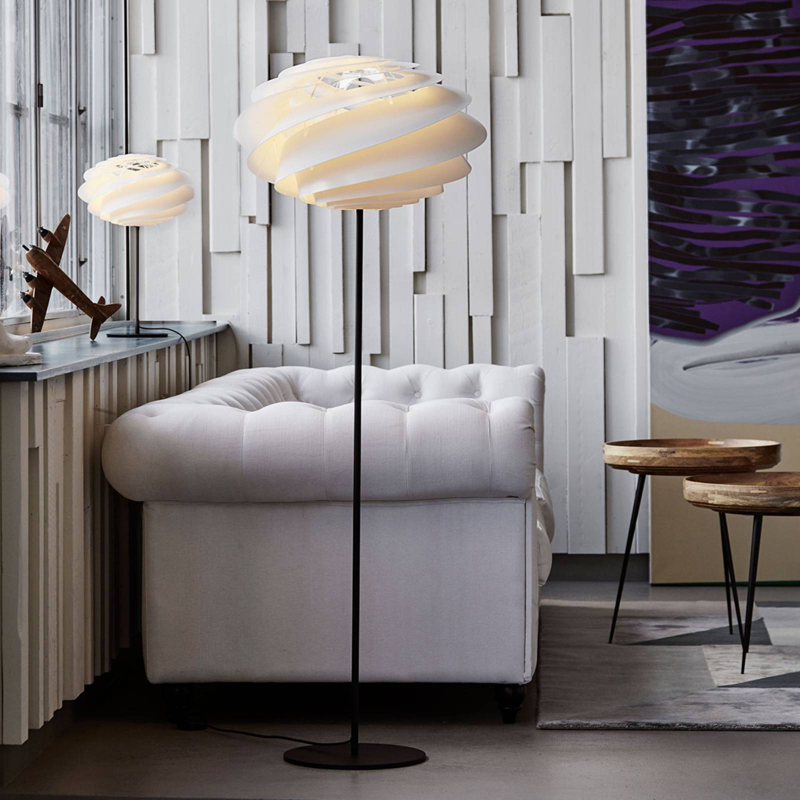 Swirl - una piantana di design di Le Klint, firmata da Øivind Slaatto Una struttura metallica molto semplice, verniciata in nero, e un esclusivo paralume di design che costituisce un vero colpo d'occhio in ogni ambiente. Øivind Slaatto è il designer che ha firmato la serie di lampade Swirl trovando ispirazione nella natura ma anche nei principi della matematica e nel fascino di forme geometriche come i frattali. La leggerezza e l'estetica della piantana sanno valorizzare ogni ambiente. Altrettanto vale per l'effetto: la luce si fa strada attraverso gli spazi intermedi sottolineando il paralume stesso ma anche creando un'atmosfera a dir poco magica. La piantana Swirl viene prodotta dall'azienda danese Le Klint, che dal 1943 offre creazioni particolari collaborando con diversi designer. Il tratto distintivo delle lampade prodotte da Le Klint sono i paralumi piegati ancora oggi non a macchina bensì a mano.