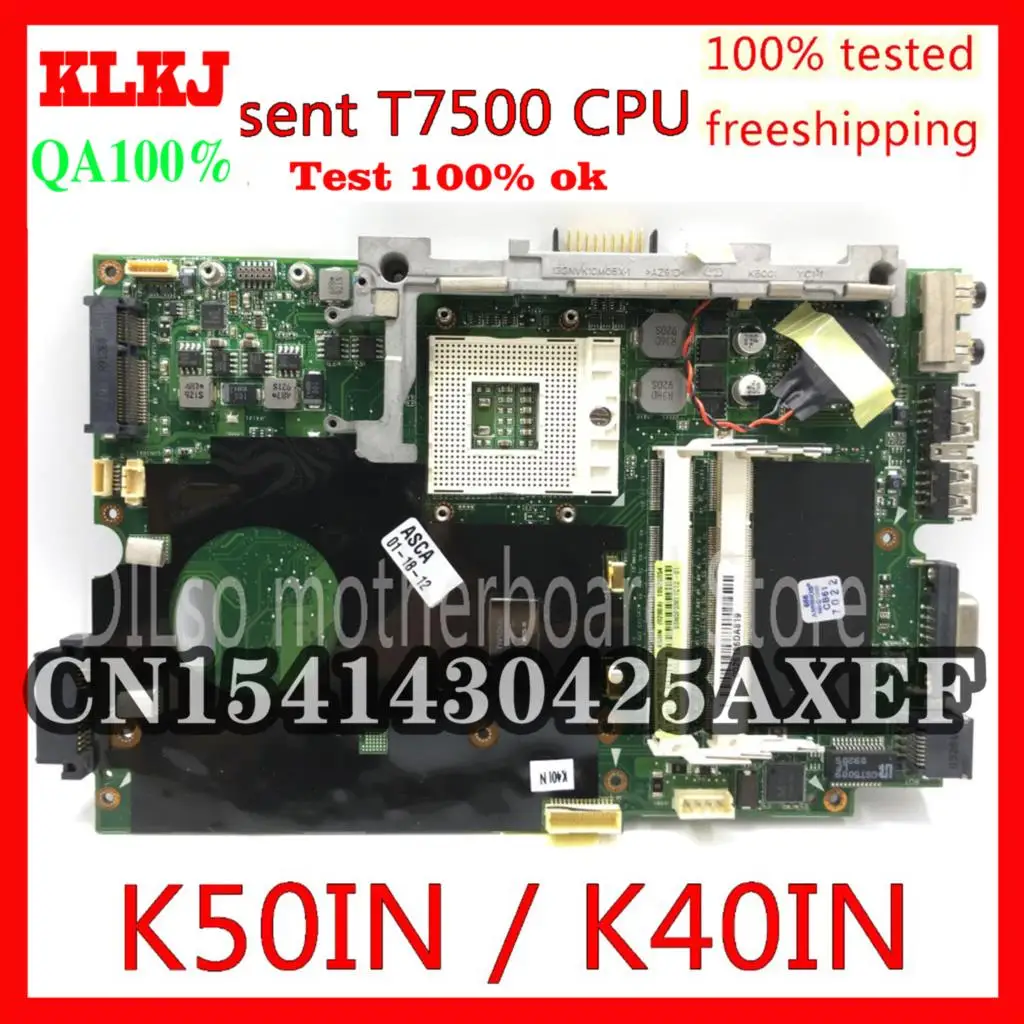 KLKJ K40IN K50IN Motherboard For Asus X8AIN,X5DIN K40IP K50IP K40AB K50AB K40IJ Laptop Motherboard Sent T7500 CPU