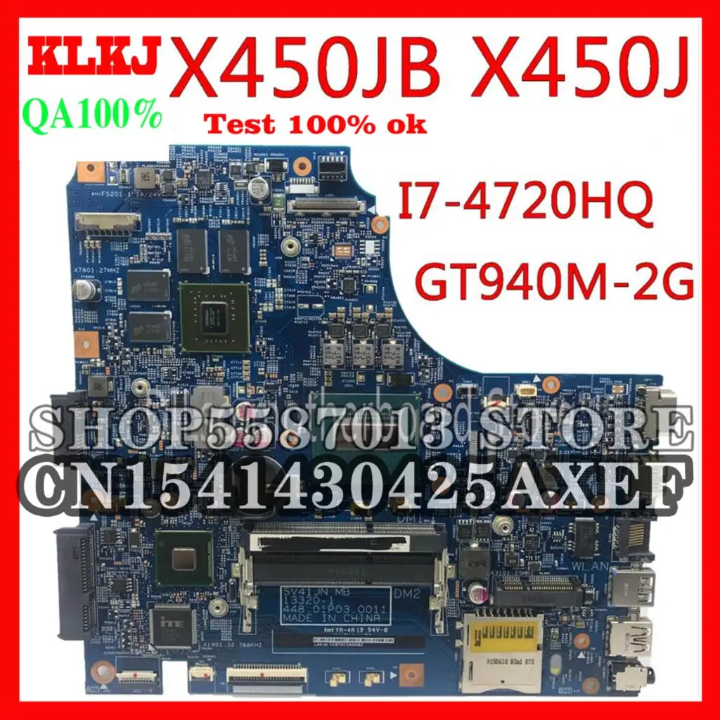 KLKJ X450JB Motherboard For ASUS X450 X450J X450JN X450JF SV41JN Laptop Motherboard I7-4720HQ GT940M Test Work 100% Original