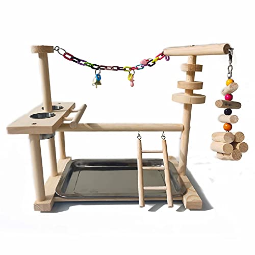KLMYTCWSD Supporto per Uccelli in Legno, trespolo per pappagalli,Supporto per Pappagallo, Cavalletti per Gabbia per Uccelli con Scala Altalena Vassoio in Acciaio Inossidabile(E:36.5 * 25.5 * 35CM)