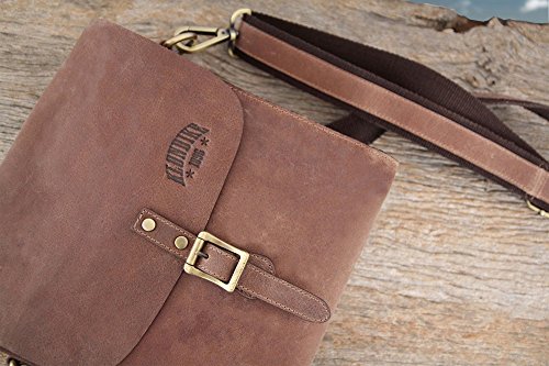 Klondike 1896 Borsello Brad in Pelle, Borsa a Tracolla look vintage - Marrone