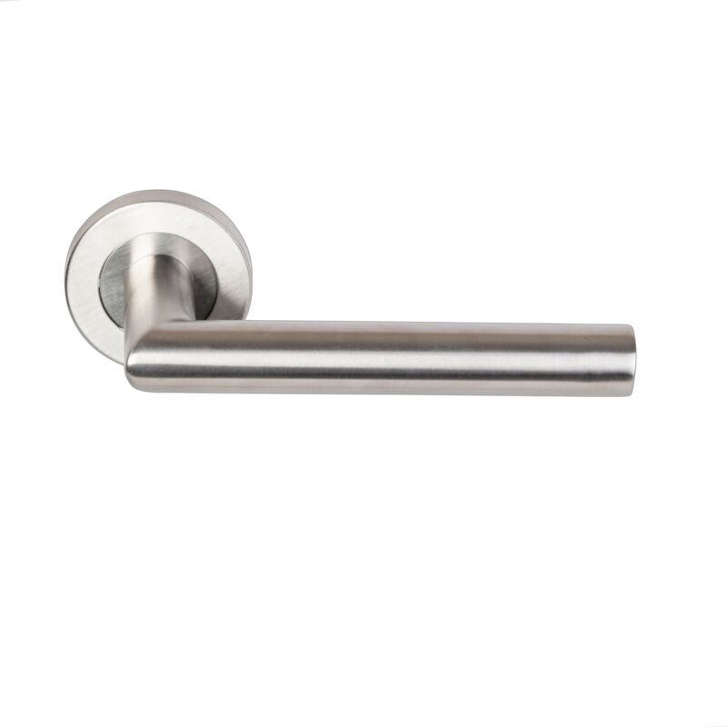Dettagli: Maniglia su rosone rotondo con ritorno a molla. Venduti in coppia con rosette per maniglie a leva. Viti in acciaio inox incluse. Rose rotonde in acciaio inox, finitura spazzolata opaca. Rose fissate al sottotelaio (viti in dotazione). Caratteristiche: Colore: acciaio inox Dimensioni: L .133 mm x Ø 19/53 mm