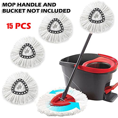 KLSAMNM - Testine di ricambio per mocio, 15 pezzi, compatibili con mocio rotante, testa di ricambio per mocio, rotazione a 360°, facile da pulire e asciugare