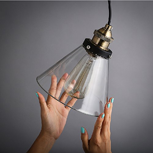 1. Ombra Premium moderna industriale Edison Vetro Mini sospensione del cono d'epoca lampada del soffitto Ombra, E27 (lampadina non inclusa) Colore: Trasparente