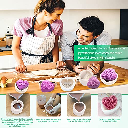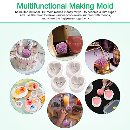 KLYNGTSK 4 stampi per sapone in silicone antiaderenti per caramelle kit di stampi per glassare fiori 3D a forma di cuore rose in silicone stampi per cottura decorazioni fatte a mano strumenti di