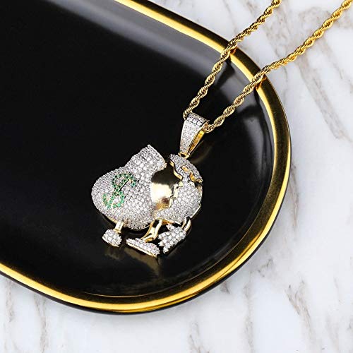 KMASAL Collana Di Diamanti Da Laboratorio Placcata Oro 18 Carati Ghiacciata Borsa A Forma Di Moneta Da Uomo Pendente Per Uomo Donna (gold)