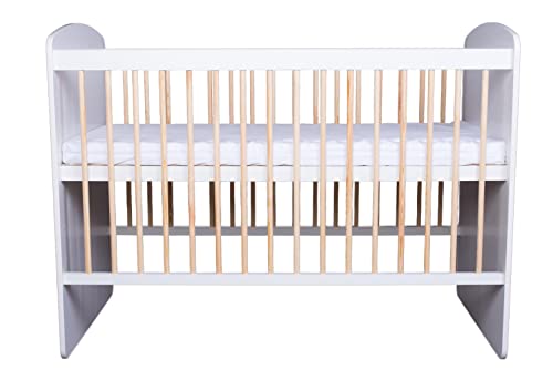 SICUREZZA: La culla è realizzata in legno di pino e MDF e ricoperta da uno strato di lacca bianca, che è assolutamente a misura di bambino e non rappresenterà alcun pericolo per il benessere della tua famiglia. I pioli di legno sono stati posti a una distanza di sicurezza in modo che la testa non potesse essere spinta.
