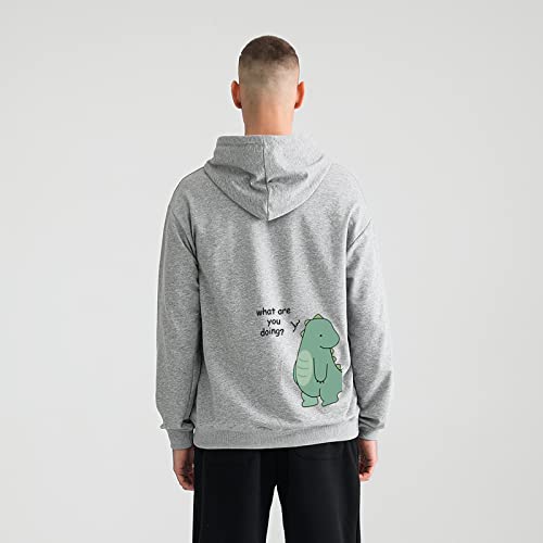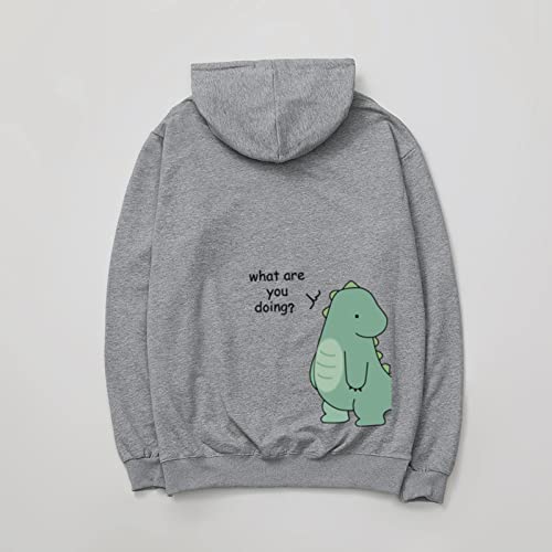 KMCOJIA Dinosauro Carino Felpa con Cappuccio per Coppia,Manica Lunga Sweatshirt con Tasche, Idea Regalo per San Valentino(1 pièces) Green-Grey-M