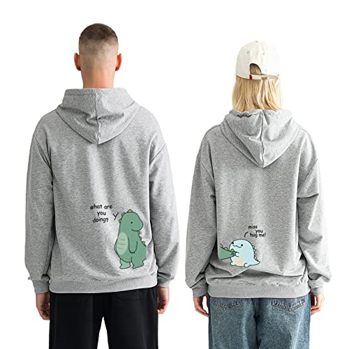 【Design squisito di alta qualità】 : Felpa con cappuccio da coppia abbinata Simpatico Dinosauro, materiale in cotone di alta qualità! Resistenza all'usura, antirughe, buona elasticità. Felpe con cappuccio creative che ti rendono eccezionale quando cammini per strada. L'abbigliamento è sottile, quindi è adatto da indossare da solo quando non fa troppo freddo in primavera e autunno, o da indossare sotto il soprabito nel freddo inverno.