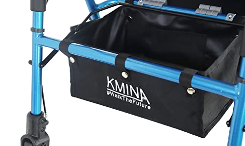 KMINA - Deambulatore Sedia a Rotelle Pieghevole (2 in 1), Deambulatore per Anziani, Deambulatore per Anziani 4 Ruote, Deambulatore con Seduta, Rollator Deambulatore Blu, Regolabile in Altezza