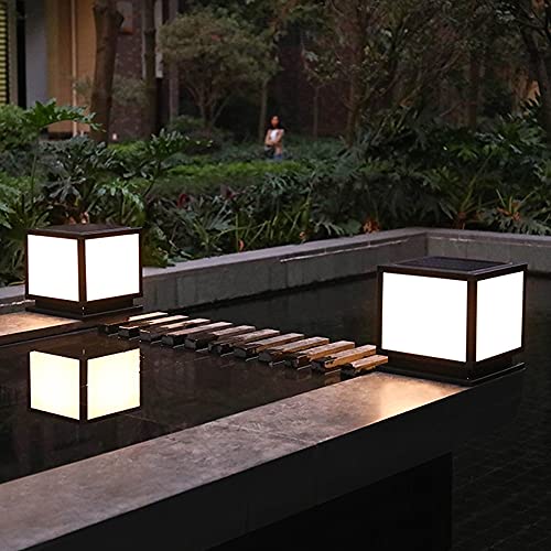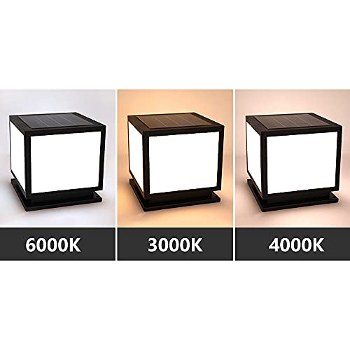 KMYX Lampione Solare A Colonna in Acciaio Inossidabile con Paletto Quadrato Lampada A Colonna per Cancello Lampada per Pilastro Esterno Recinzione Luce Stigma Luce A Tre Colori Lampione Stradale