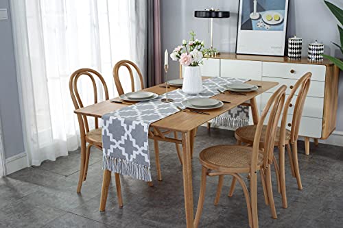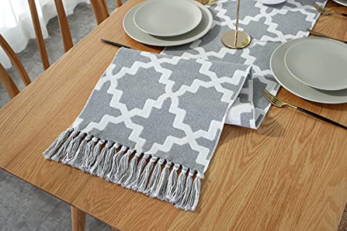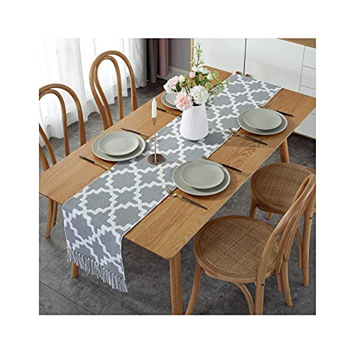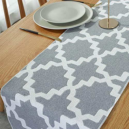 KnBoB Cotone lino beige grigio puzzle geometrico con nappe, runner da tavola autunnale dimensioni 32 x 240 cm