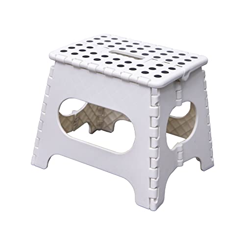 Knight Sgabello pieghevole in plastica, resistente, resistente allo scivolo, per bambini e adulti, bianco, nero, grigio, 29 x 27 x 22 cm (bianco)